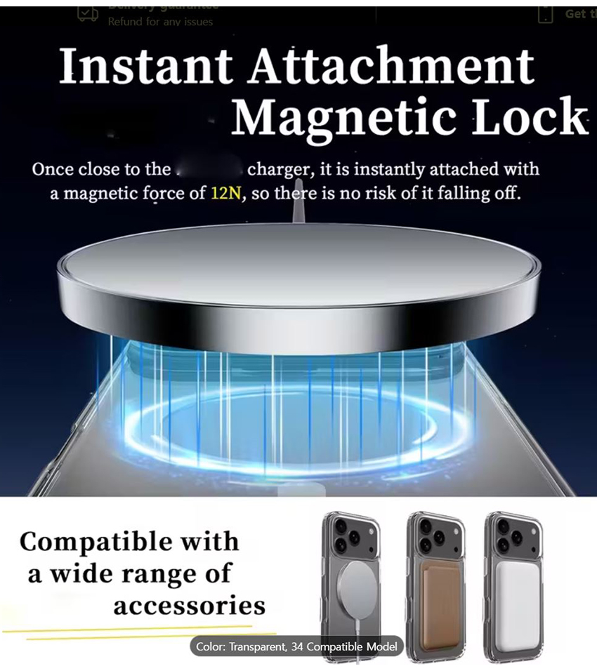Stronger Magnetic Lock: powerful built-in magnets with 1,500 g of holding force enable faster, easier place-and-go wireless charging and a secure lock on any MagSafe accessory